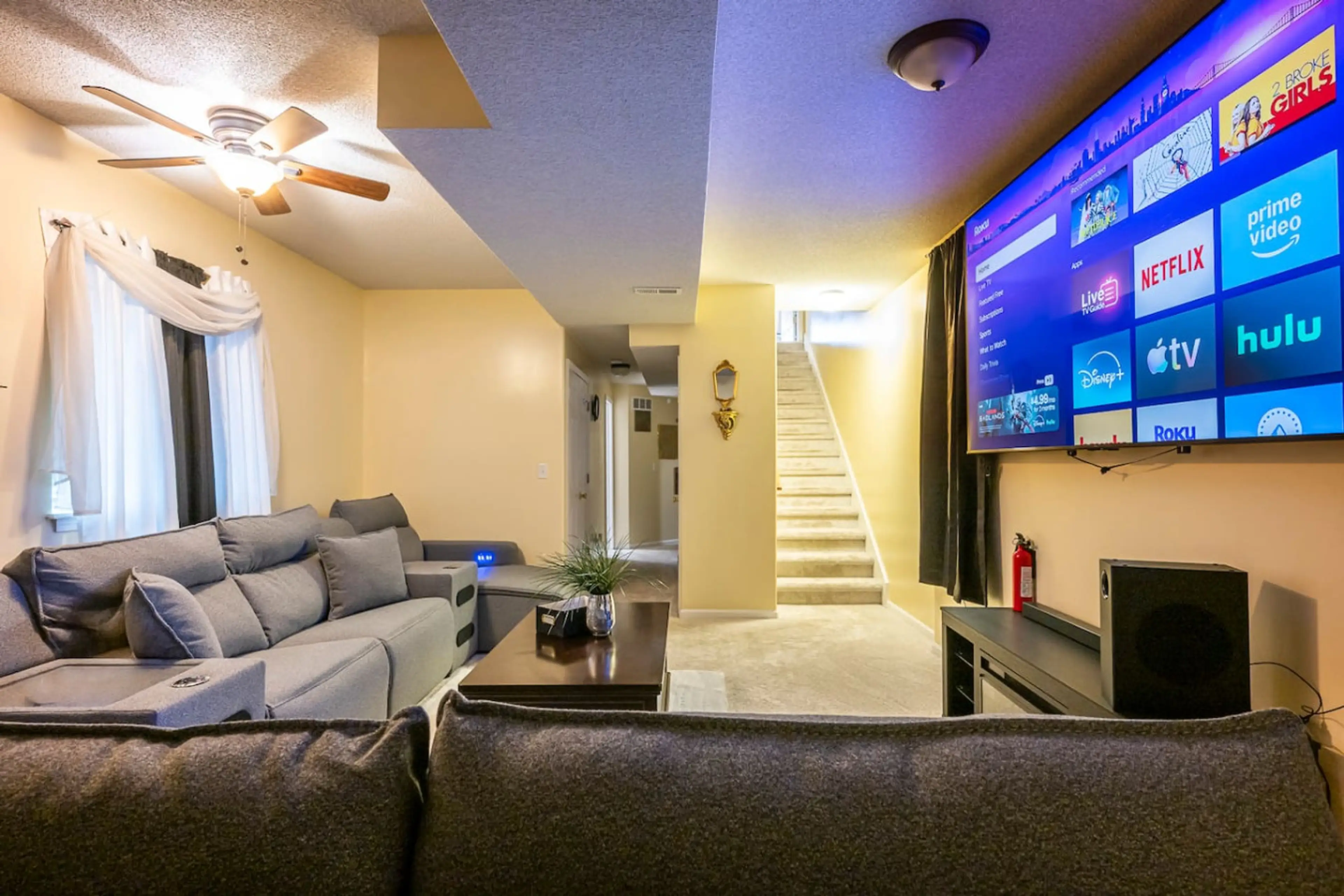 Stunning 4BR/3.5BA Kansas City home sleeping 8 — loaded with wow-factor amenities. Shoot pool in the game room, gather around the baby grand piano, and catch the big game on the big screen. The covered deck with BBQ is perfect for evening hangs. Minutes to the Plaza, Westport, Downtown, Arrowhead & ...
