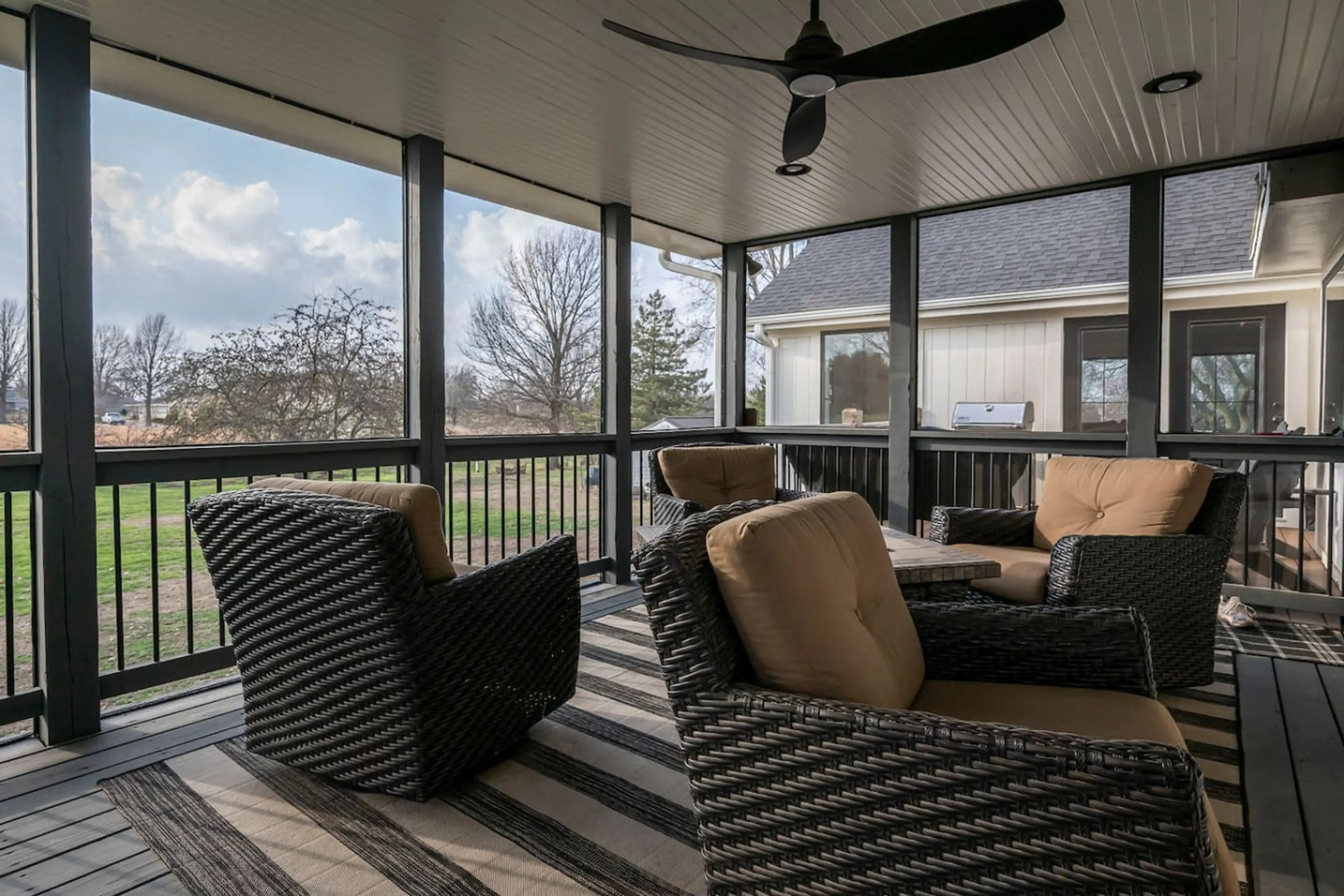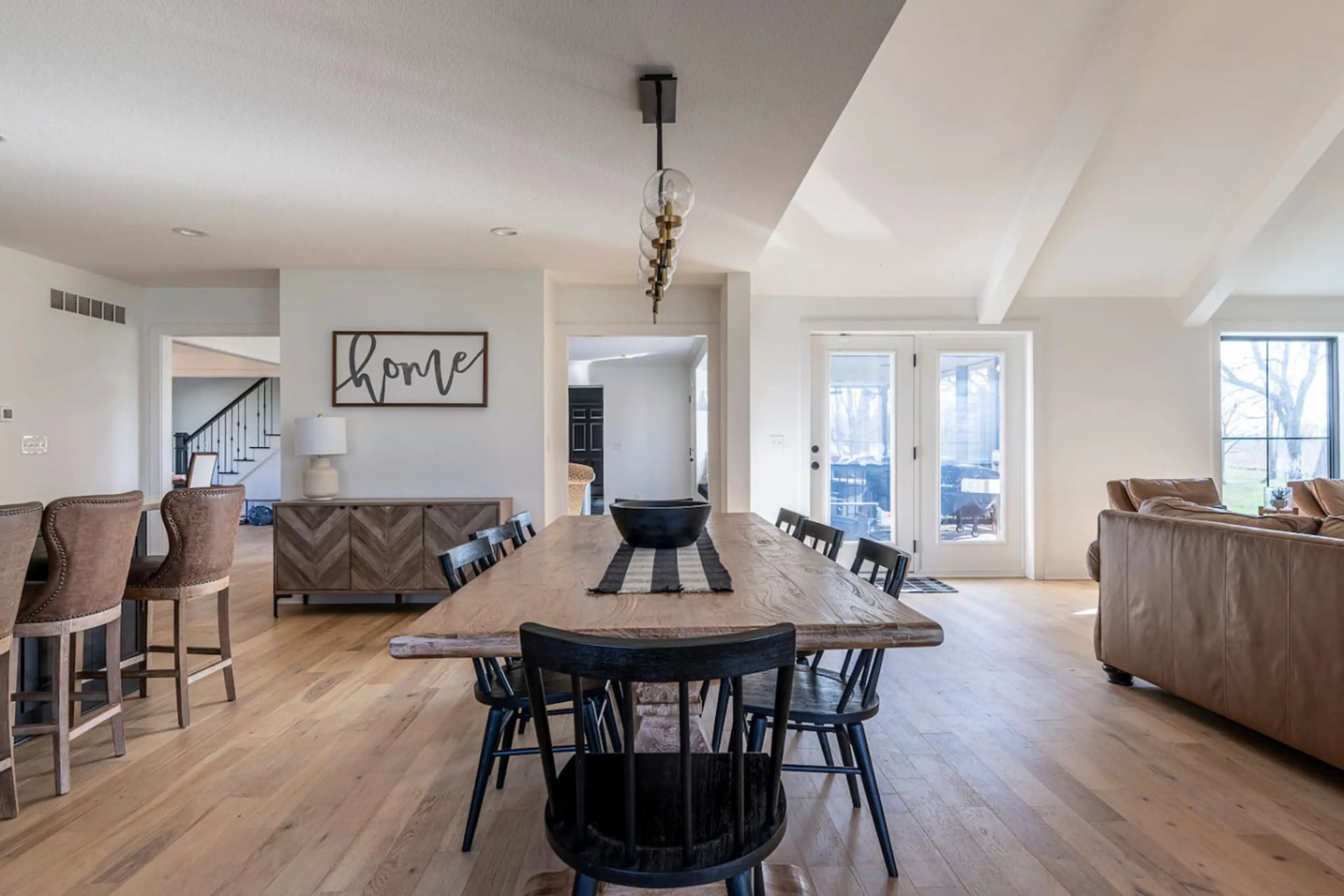 This stunning KC-area farmhouse was made for groups who want to spread out and live well. Five bedrooms, 5.5 baths, and space for 10 — plus an open-concept kitchen, cozy fire pit, covered porch, basketball court, and a moody game room lounge. Modern finishes and designer touches throughout. The kind...